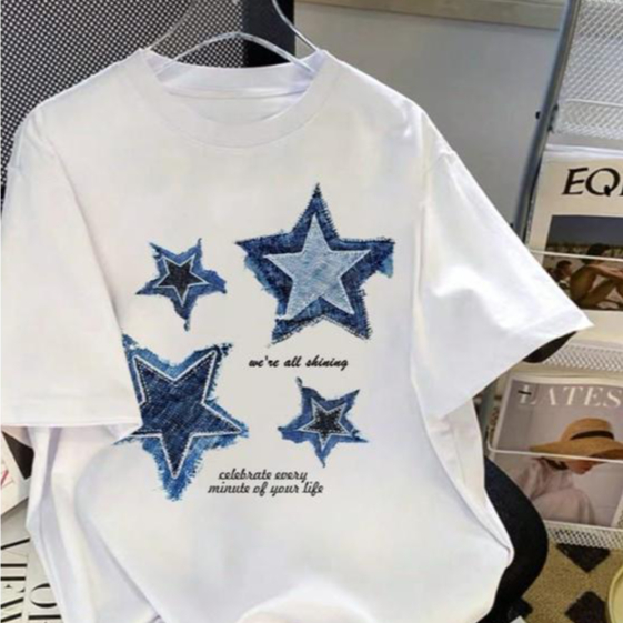 Kaos Katun Reguler Fit - Oversize Semi Katun Bintang Biru Galaxy