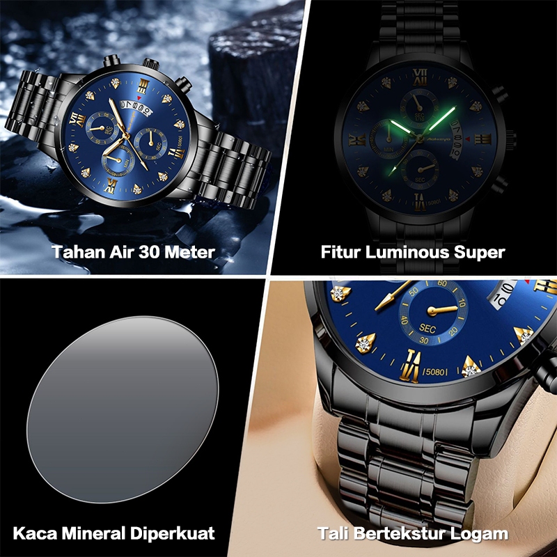 AOKEYO 5080 Jam Tangan Pria Anti Air Original Luxury Stainless Steel Free BOX+Kartu Garansi