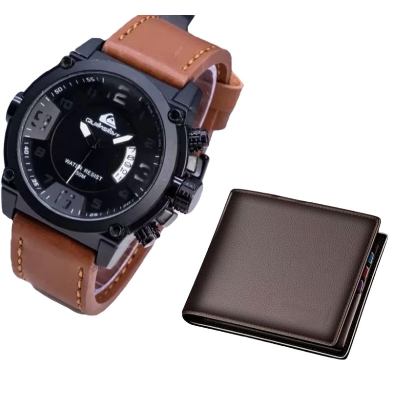 Terbaru.. Jam Tangan Pria QuikS1LV3R Tanggal Bonus Dompet Kulit Dan Batrai Cadangan Jam Tangan Pria Tali Kulit Tampilan Keren Bisa Bayar Ditempat ( )