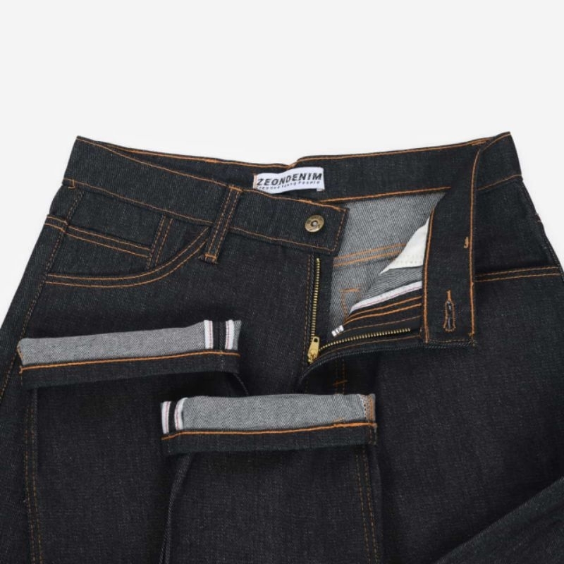 ZEON - CELANA DENIM PRIA SELVDEGE ACCENT 14 OZ RAW DENIM BLACK INDIGO