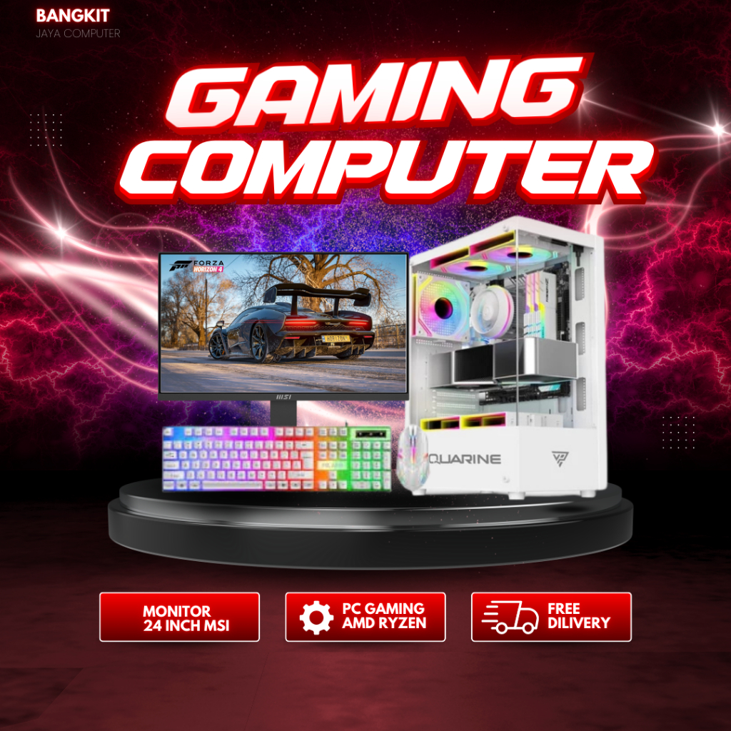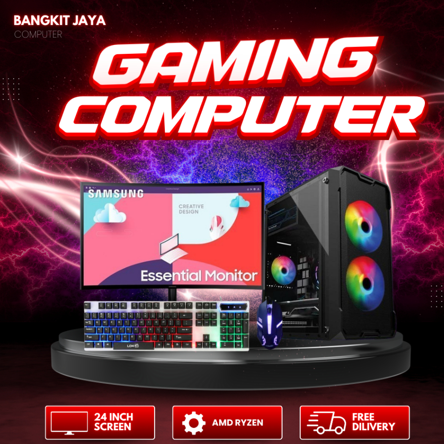 PC Gaming Fullset Ryzen 5 5600G Ram 16GB SSD/HDD Monitor 24 Inch Gaming Editing