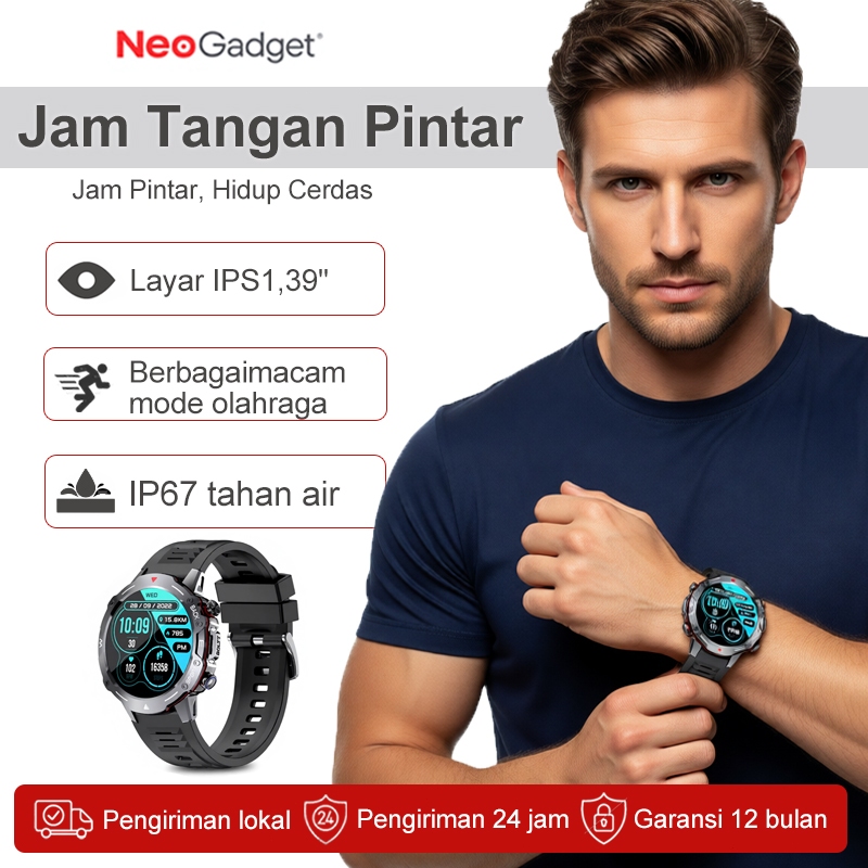 NeoGadget 2025 Baru Smartwatch Jam Tangan Pintar Olahraga Fitness Health Monitoring IP67 Tahan Air Sentuh Penuh 1,39 Inci Original Fasion Design Fashion Wanita Pria Cocok untuk Android dan iOS