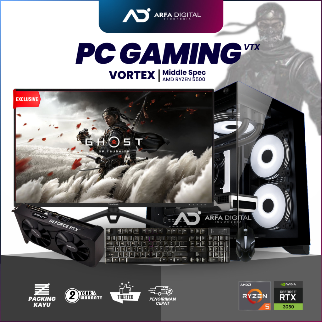PC Rakitan Gaming Streaming Fullset AMD Ryzen 5 5500 - VGA RTX 3050 8GB - RAM 32GB - SSD 512GB NVME - Monitor 24inch 180Hz | VORTEX