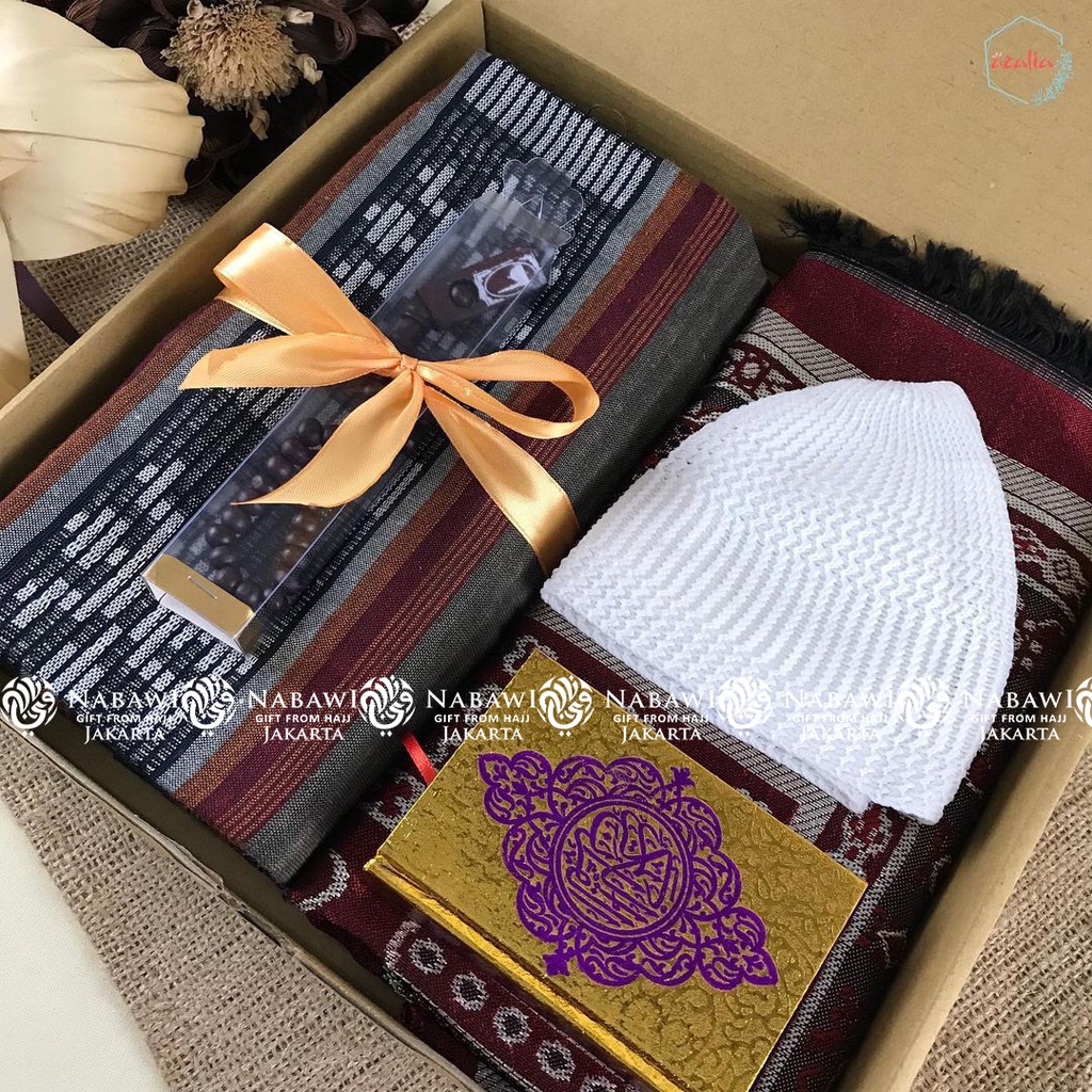 HAMPERS GIFT BOX B + SARUNG KADO COWOK SAJADAH AL QURAN PECI TASBIH KADO ULANG TAHUN WISUDA