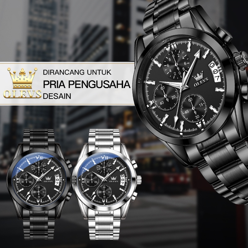 OLEVS Jam Tangan Pria Original Anti Air Fashion Sport Analog Chronograph Stainless Steel Watch Men