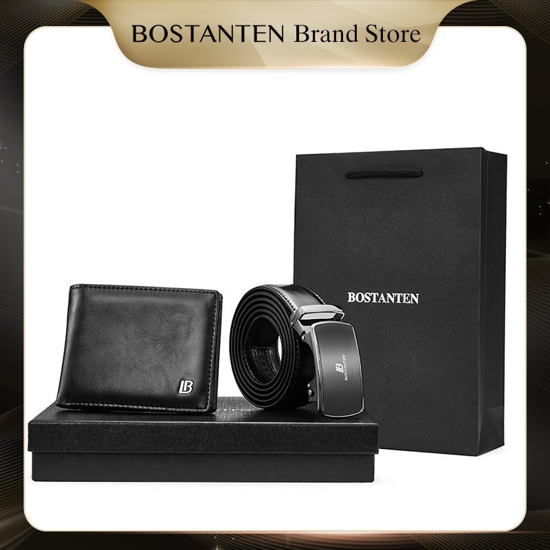 BOSTANTEN SET KOMBINASI DOMPET PU DAN SABUK KULIT SAPI PRIA 125CM DAPAT DILEPAS DAN DIPOTONG PENDEK