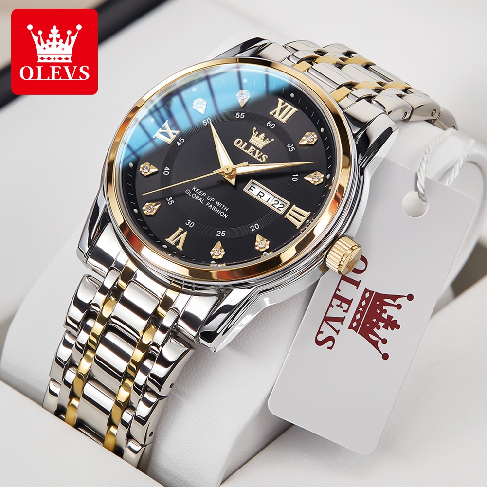 OLEVS Jam Tangan Pria Anti Air Original 100 PERSEN Rantai Keren Terbaru Mewah Cowok Putih Luxury Stainless Steel Watch Men Model 5513