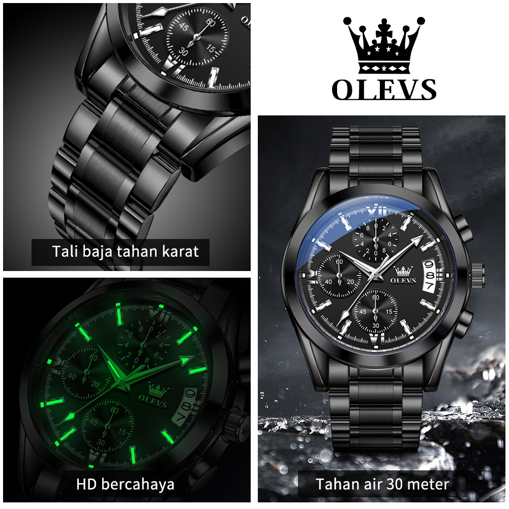OLEVS Jam Tangan Pria Original Anti Air Fashion Sport Analog Chronograph Stainless Steel Watch Men