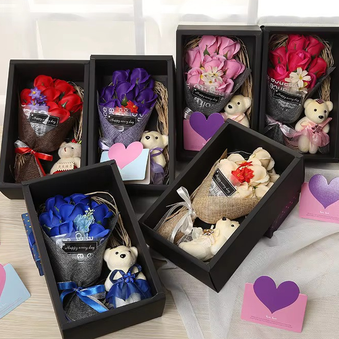 BUCKET BUNGA HADIAH VALENTINE SABUN DEKORASI LED HAMPERS KADO UNIK ULANG TAHUN HARI JADI ANNIVERSARY