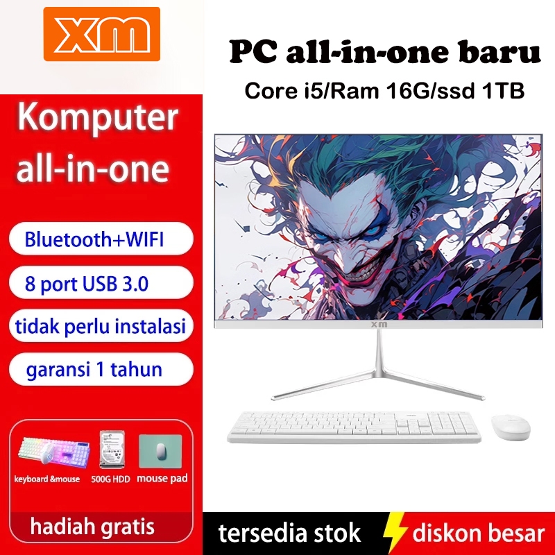 PC All-in-One Intel Core i5 Baru - Komputer Kantor, Desain & Gaming Set Lengkap, Performa Unggul