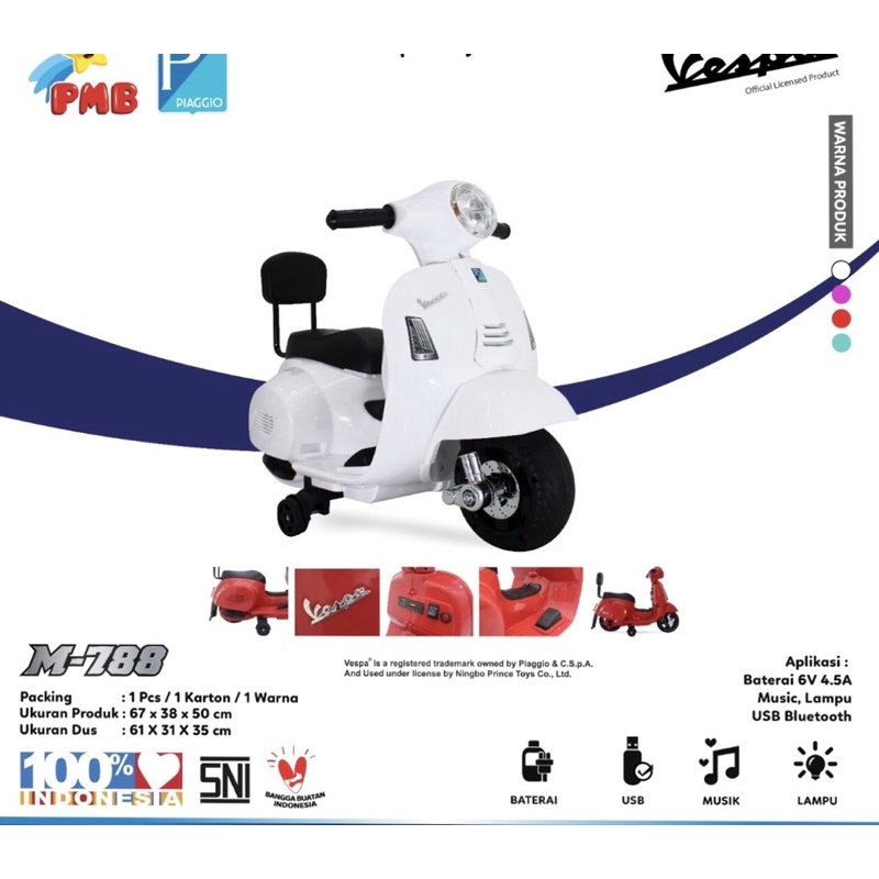 Motor Aki Anak PMB M-788 Vespa Mini Lisensi Original Murah M788 M399 M-399 Kendaraan Mainan