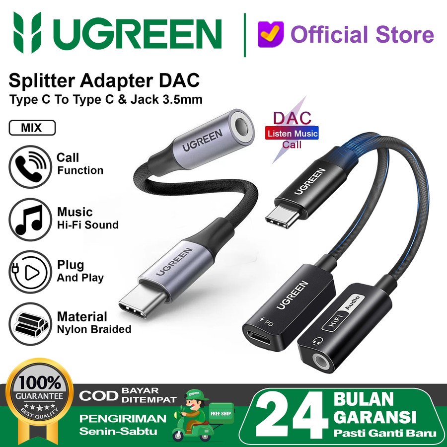 UGREEN Converter Splitter iPhone 15 Type C to Jack 3.5mm DAC Open Mic
