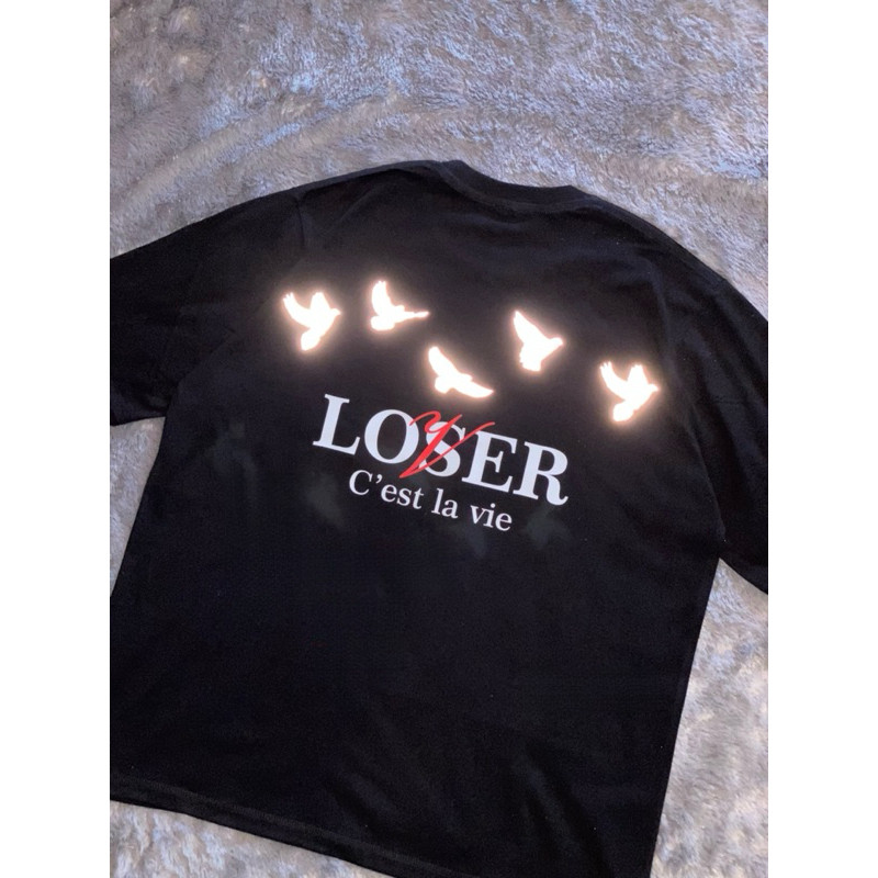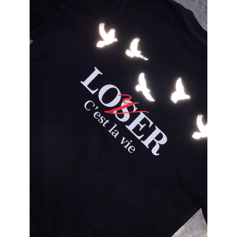 Kaos Sablon Pria Wanita reflektif t-shirt lover loser menyala | pria dan wanita Lengan Pendek 24s Cotton Combed tebal sablon style black