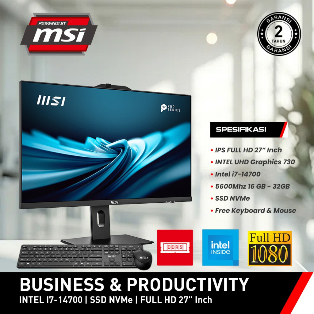 MSI AIO ALL IN ONE PC PRO AP272P 14M - BUSINESS & PRODUCTIVITY Intel i7-14700 SSD NVMe Full HD 27"Inch
