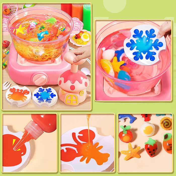 Mainan Anak Hot Pot Machine DIY hotpot Kit Mainan DIY jelly Pretend Play Toys Lem Warna Cetakan 3D Kreatif & Aman