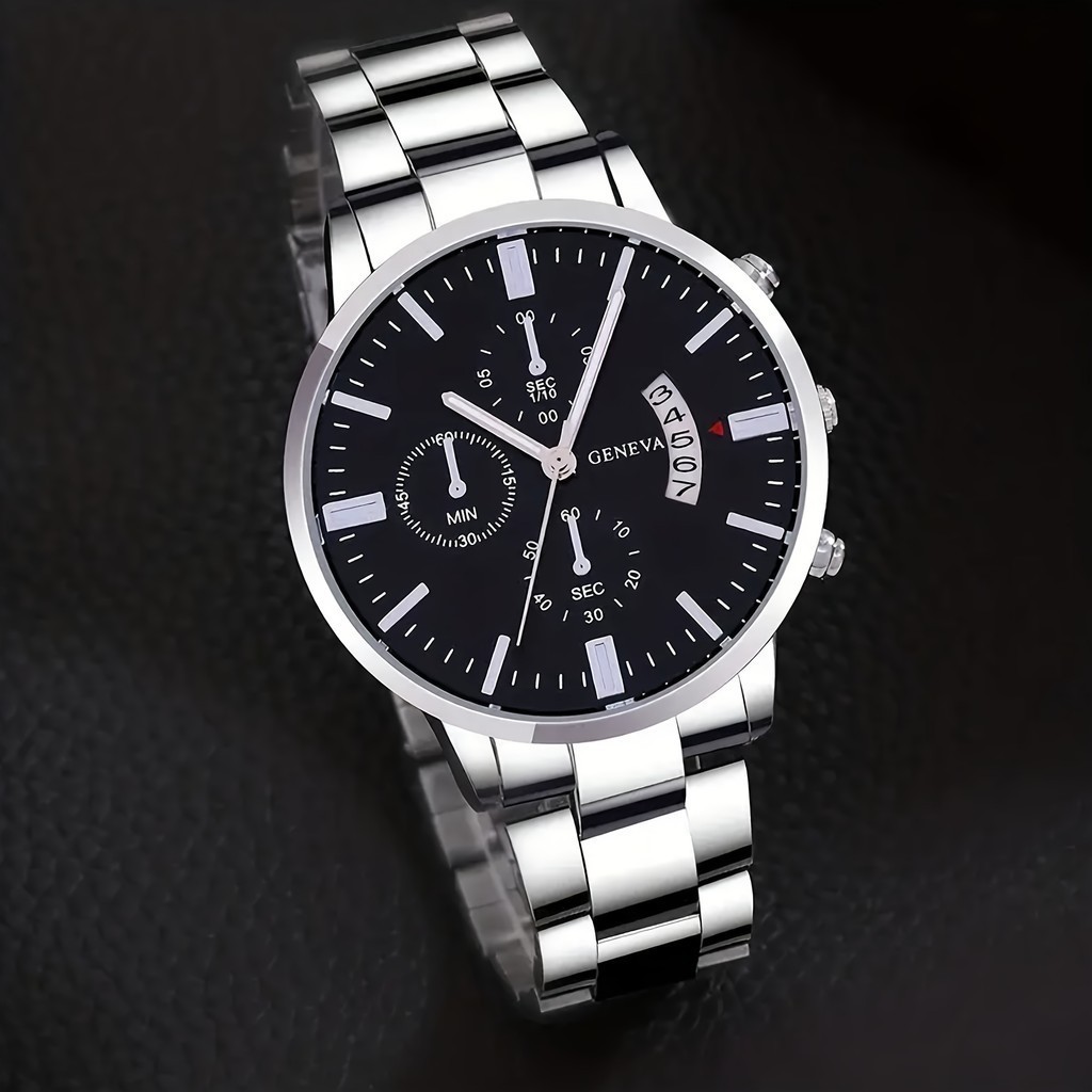 Jam Tangan Kuarsa Busana Bisnis Pria dengan tali baja berdialek bulat