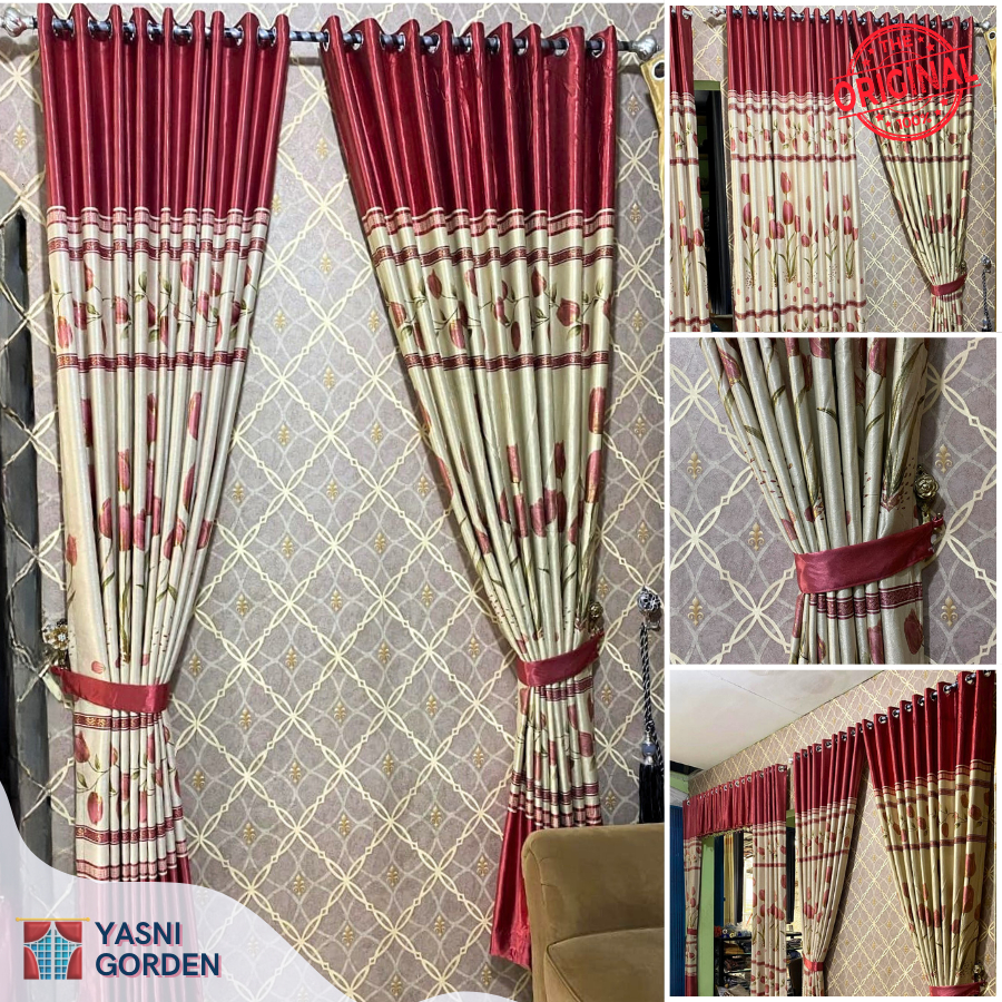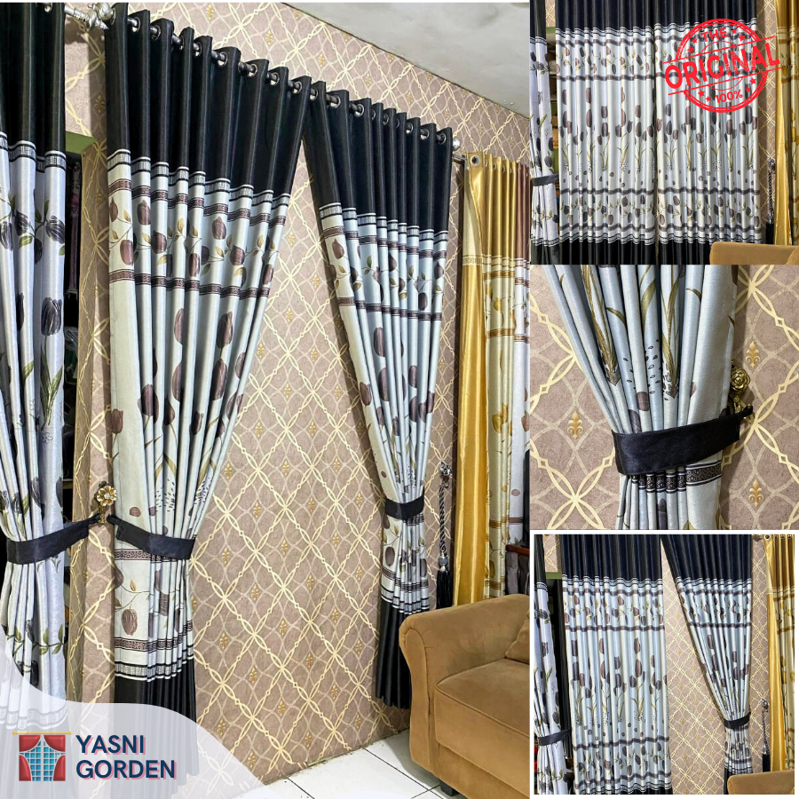 GORDEN JENDELA PINTU BAHAN BLACKOUT PREMIUM MOTIF BUNGA TULIP 9 GELEMBUNG 18 RING