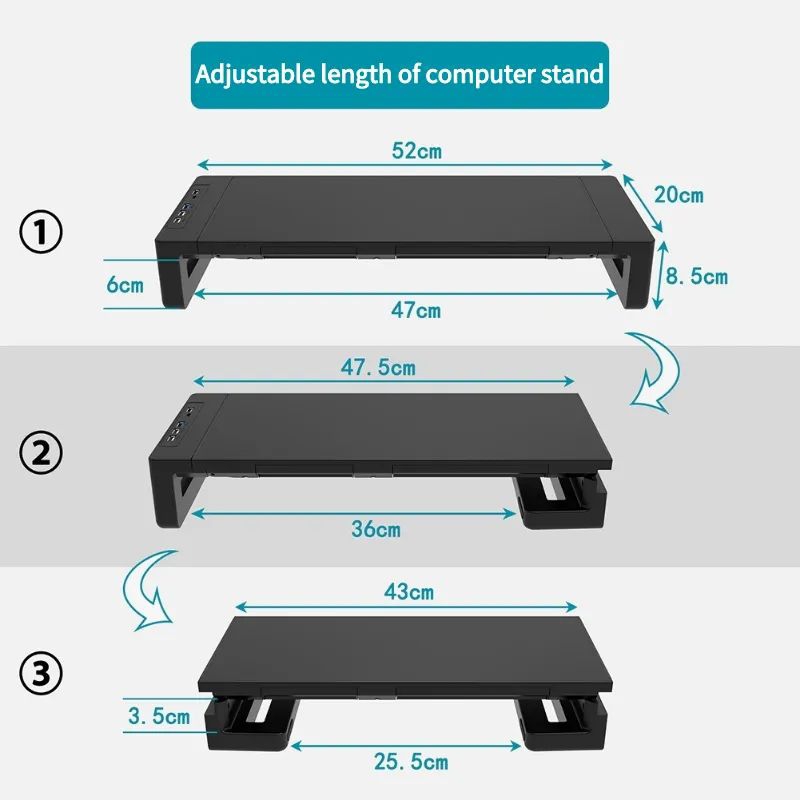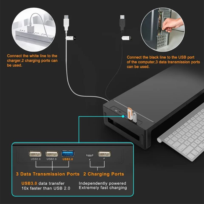 RGB Computer Monitor Stands Riser Desk with USB3.0 Port Keyboard Mouse Storage Shelf Screen Rack with Drawer Monitor Shelf