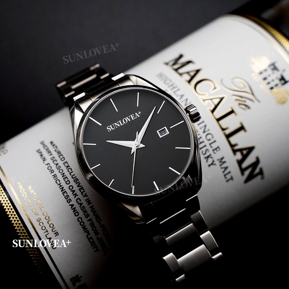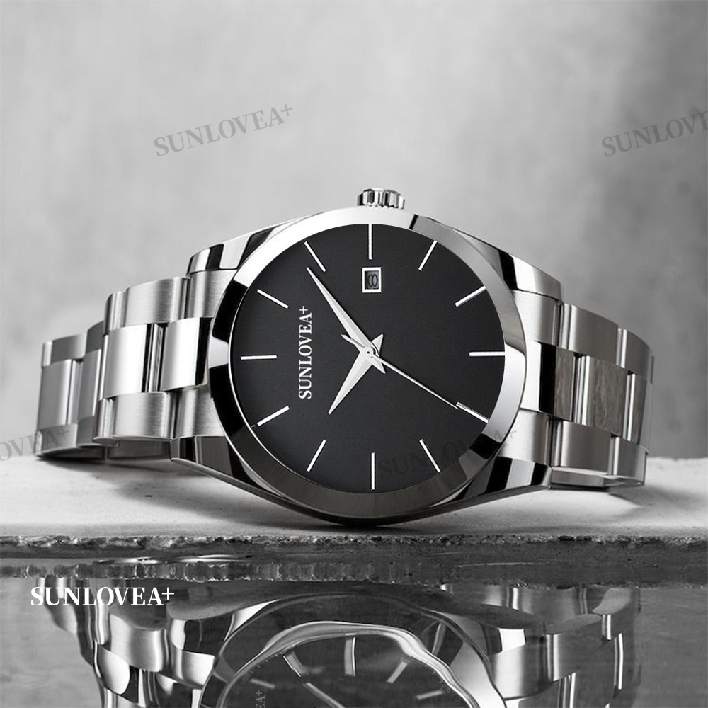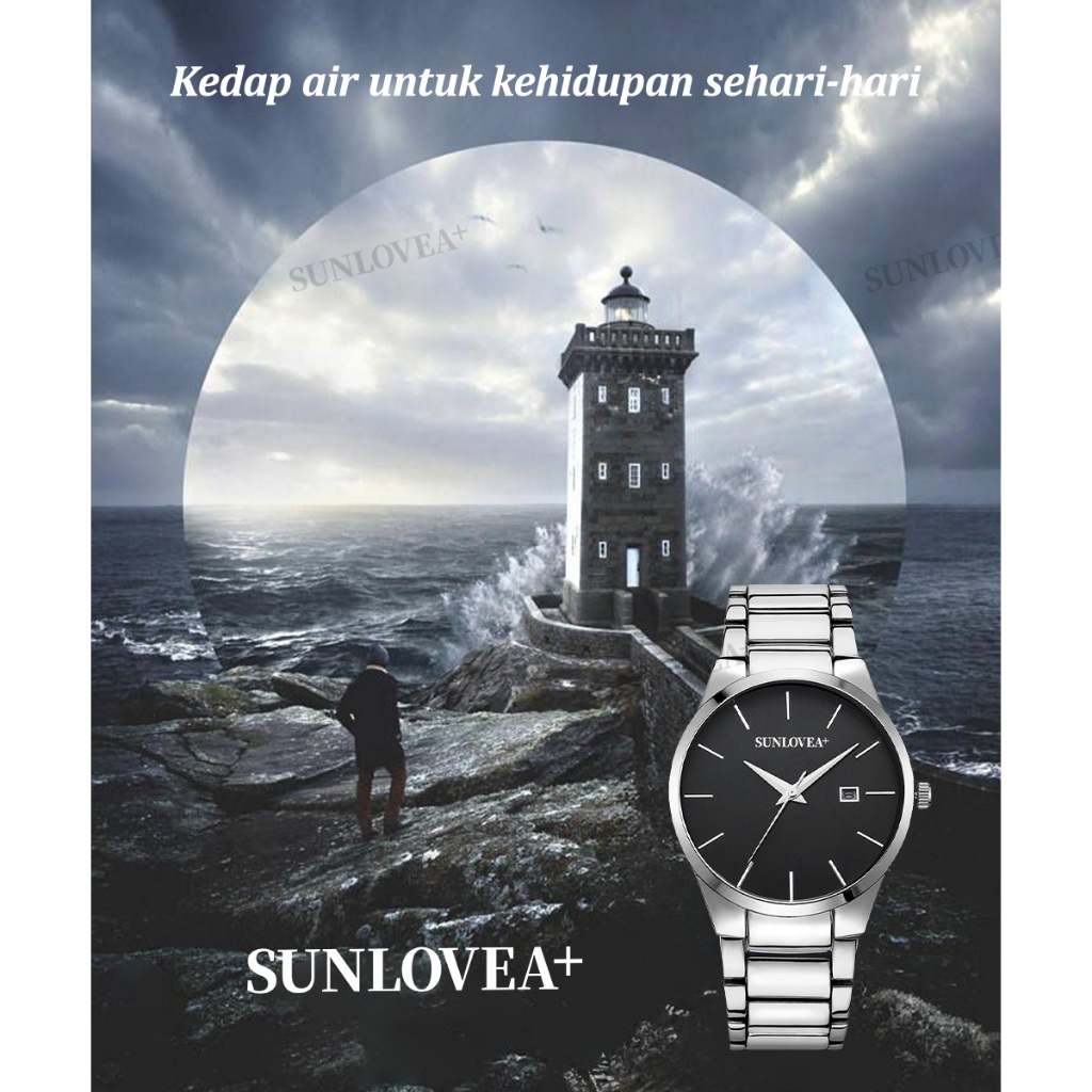 SunloveA+ Pria Bisnis Kuarsa Pria Jam Tangan Baja Tahan Air Jam Tangan Tren Mode Jam Tangan Kalender