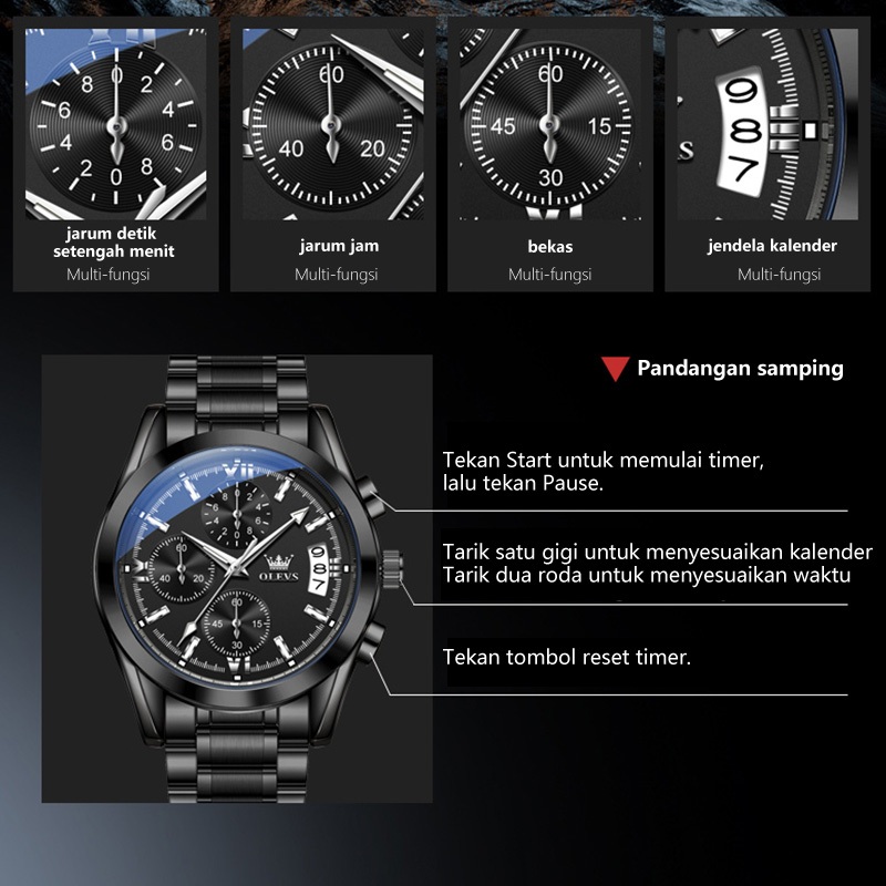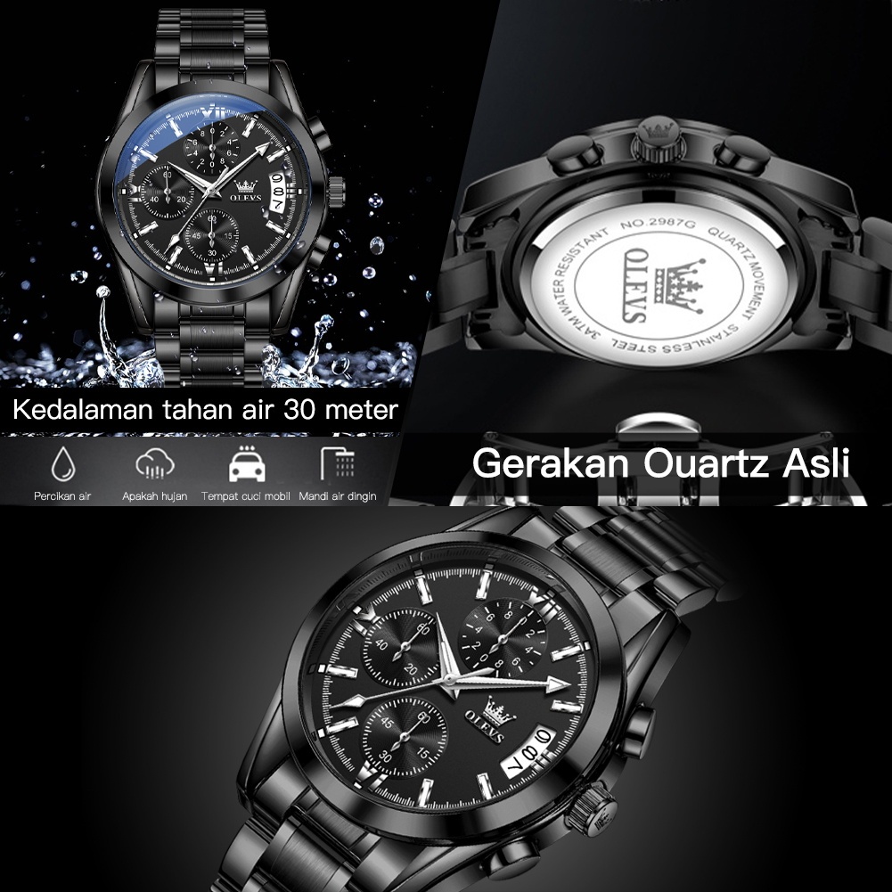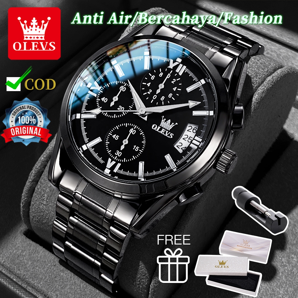 OLEVS Jam Tangan Pria Original Anti Air Fashion Sport Analog Chronograph Stainless Steel Watch Men