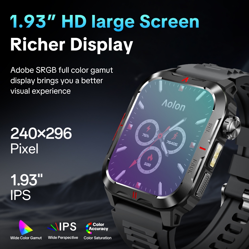 [NEW]Aolon Tetra S5 Smartwatch Original 1.93 Inci 1ATM Tahan Air 10 Meter Kompas & Senter Deteksi Tidur Kecepatan Olahraga Jam Tangan Bersertifikasi Tingkat Militer Jam Tangan Smartwatch Pria