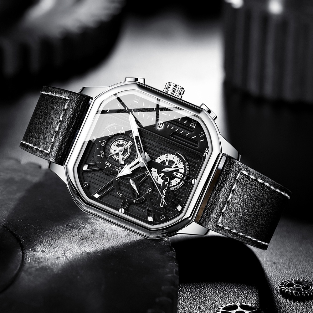 CRRJU Jam Tangan Pria Tren Fashion Asli Kreatif Panggil Persegi Kulit Kuarsa Tahan Air 2302