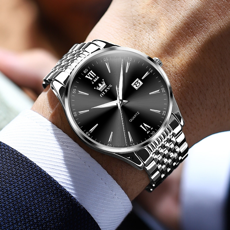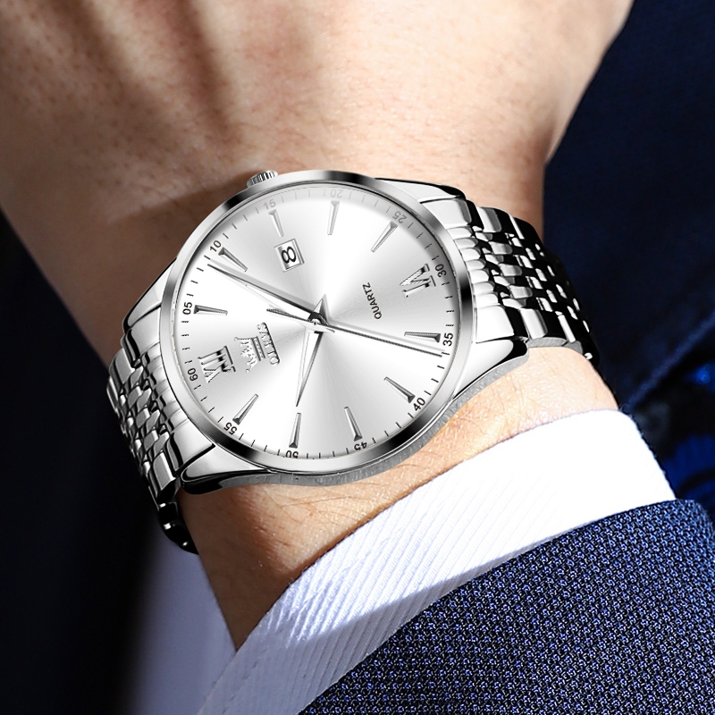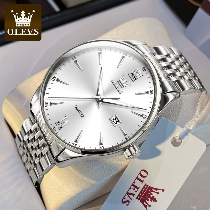 OLEVS Jam Tangan Pria Original Anti Air Cowok Kalender Arloji Jam Tangan Pria Rantai Stainless Steel Luminous Analog Bisnis Fashion Men Watches Ready Stock Mode 5009