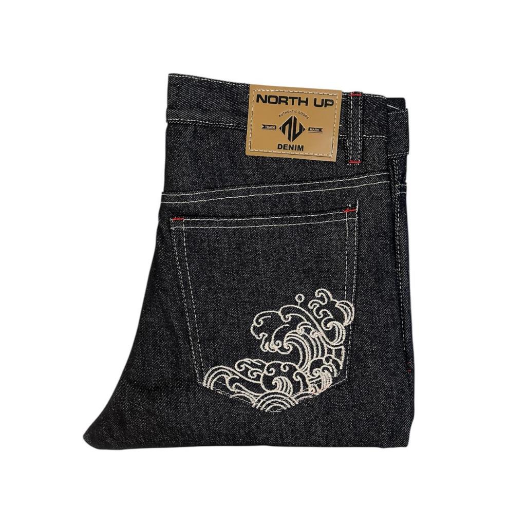 NORTH UP CELANA RAW DENIM SELVEDGE ACCENT SHELSTICH BLACK INDIGO