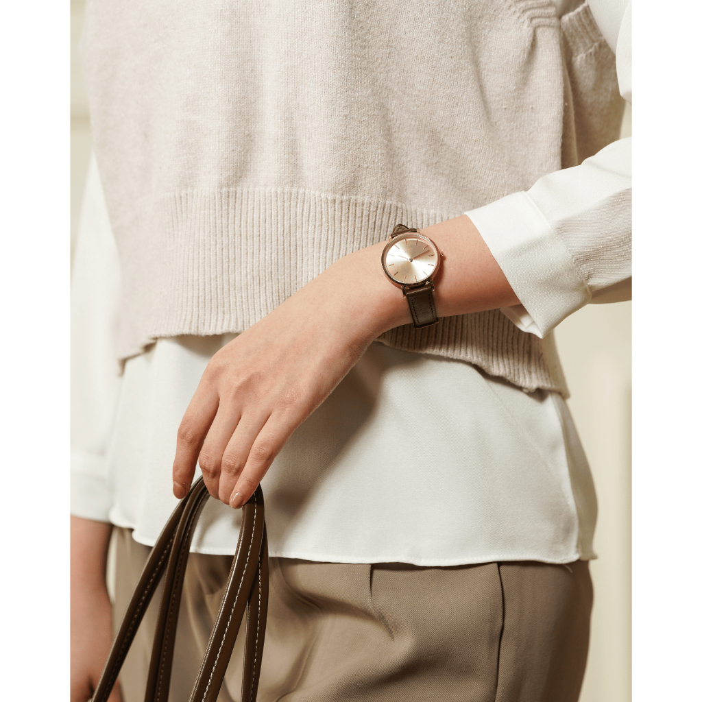 Jam Tangan Wanita Korea Analog Elegant Mewah Strap Kulit RoseG0LDS Anti Air Garansi Jisu Watch 75004