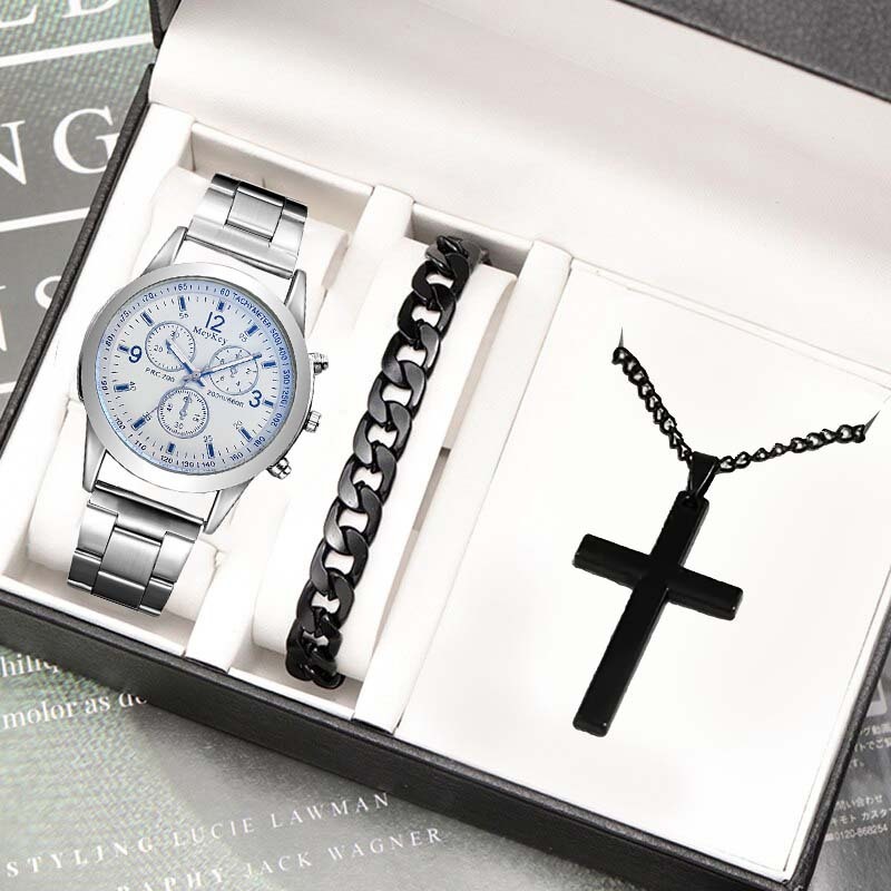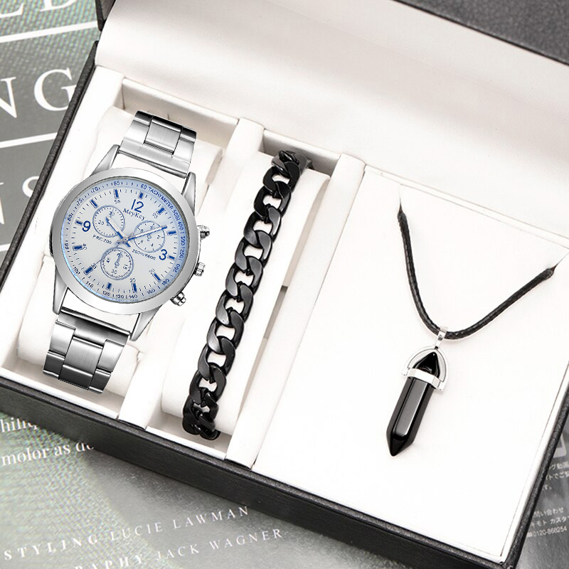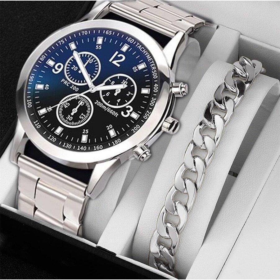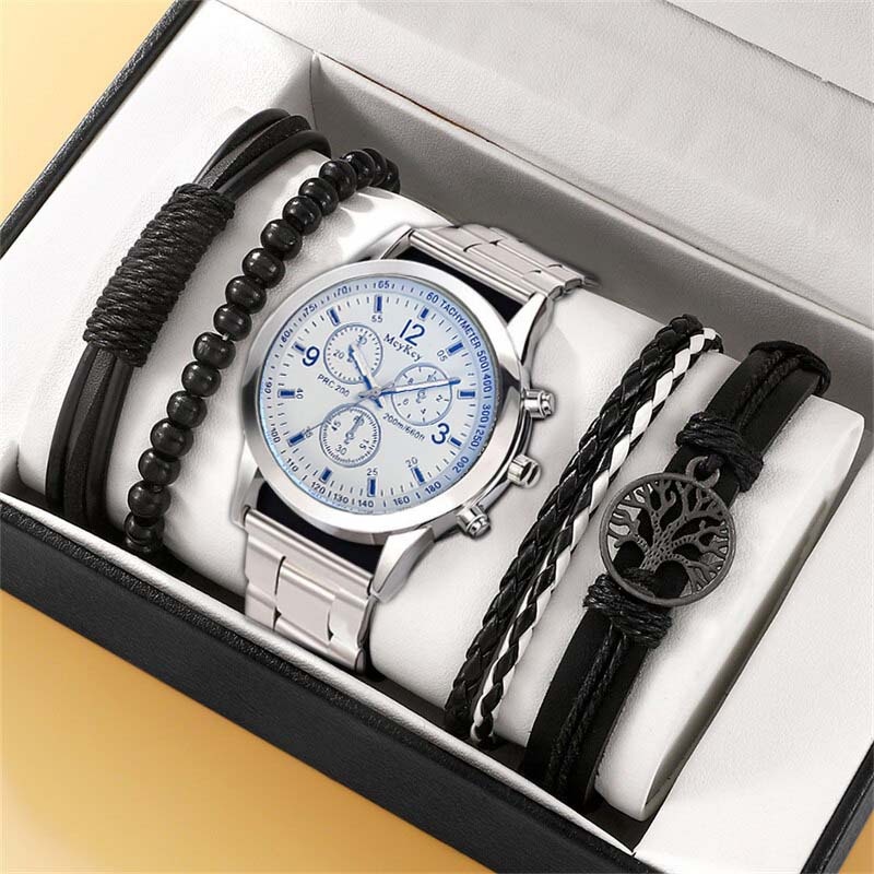 【Jam Tangan + Gelang】 Jam Tangan Kuarsa Pria Jam Tangan Baja Mode Kasual Pria Hree-eye