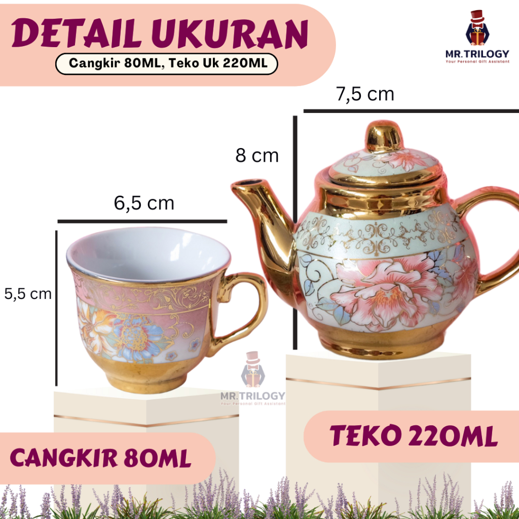 CANGKIR TEKO POT SET KERAMIK 7IN1 HAMPERS SOUVENIR MEWAH GELAS TEH