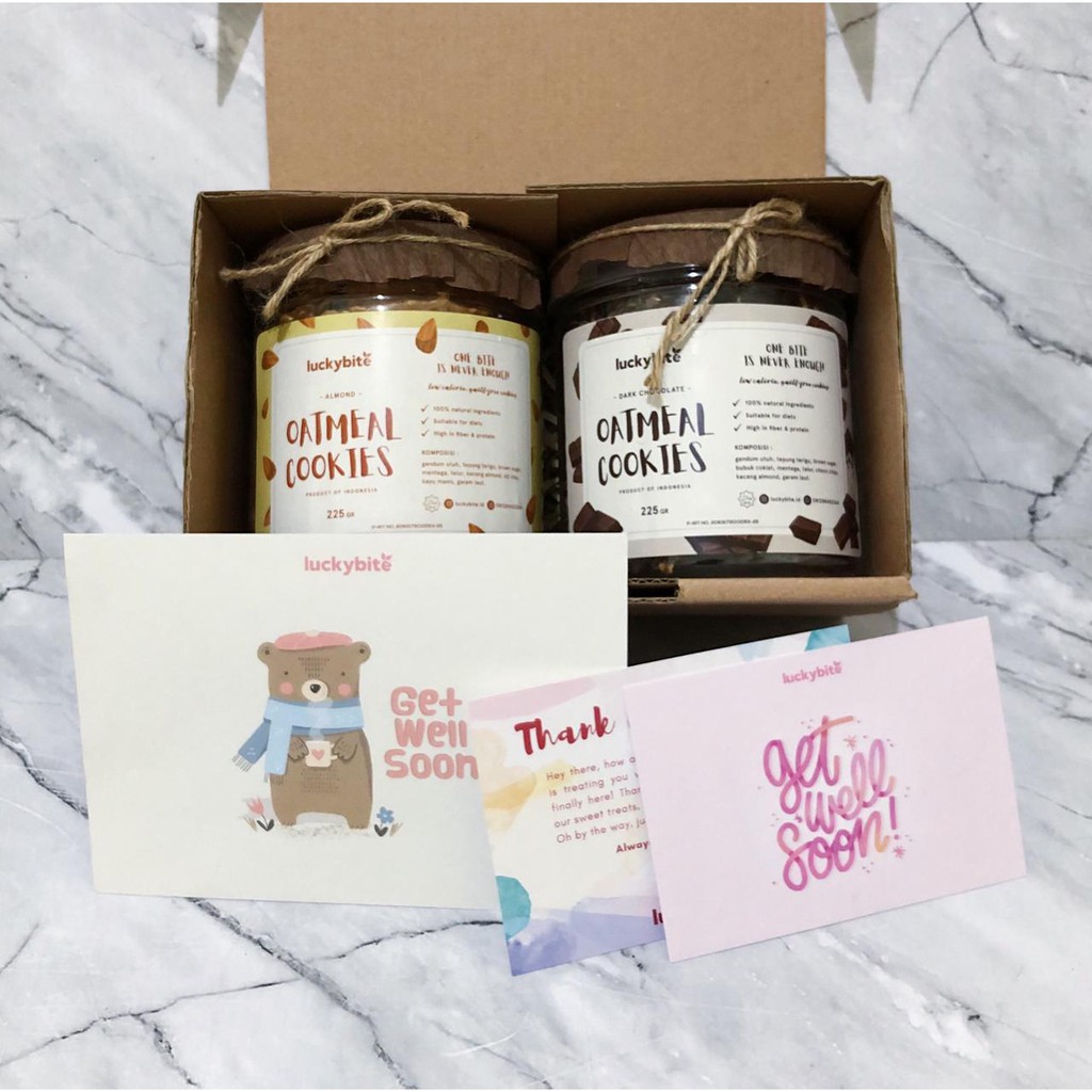 GET WELL SOON (GWS) HAMPERS/HAMPERS LEKAS SEMBUH - OATMEAL COOKIES 2 JAR + FREE GREETING CARD + PITA