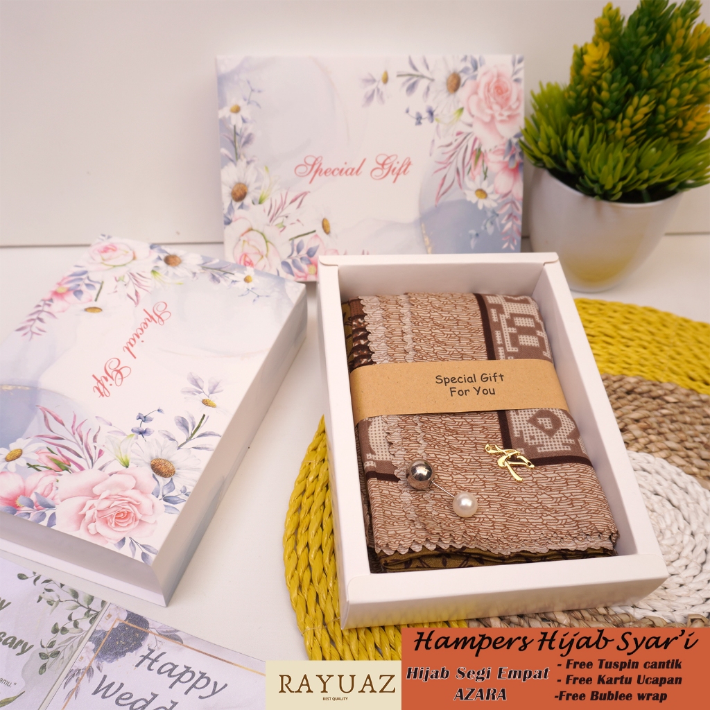 HAMPERS HIJAB SYARI AZARA MOTIF GIFT BOX KADO ULANG TAHUN CEWEK HARI GURU