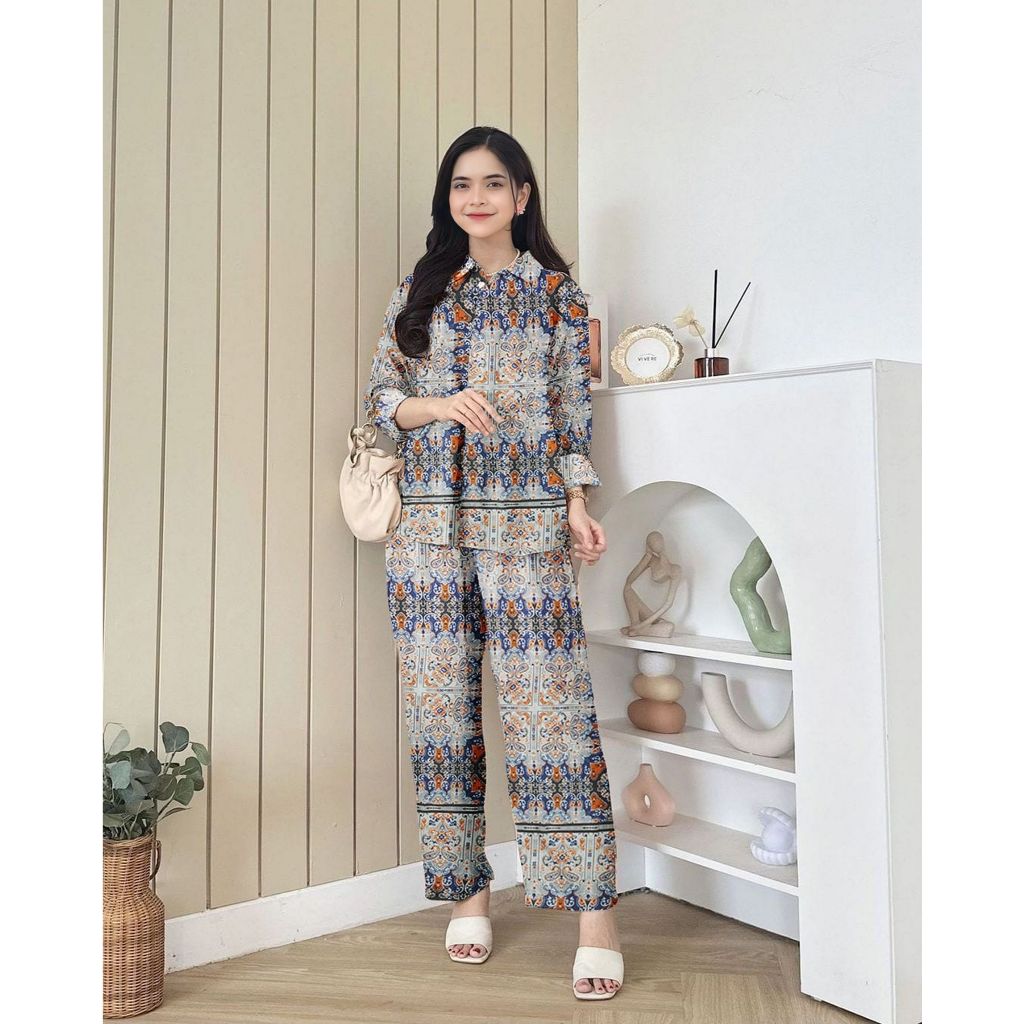PIYAMA ONE SET WANITA KEKINIAN RAYON SETELAN WANITA PAKAIAN WANITA LENGAN PANJANG BAJU TIDUR