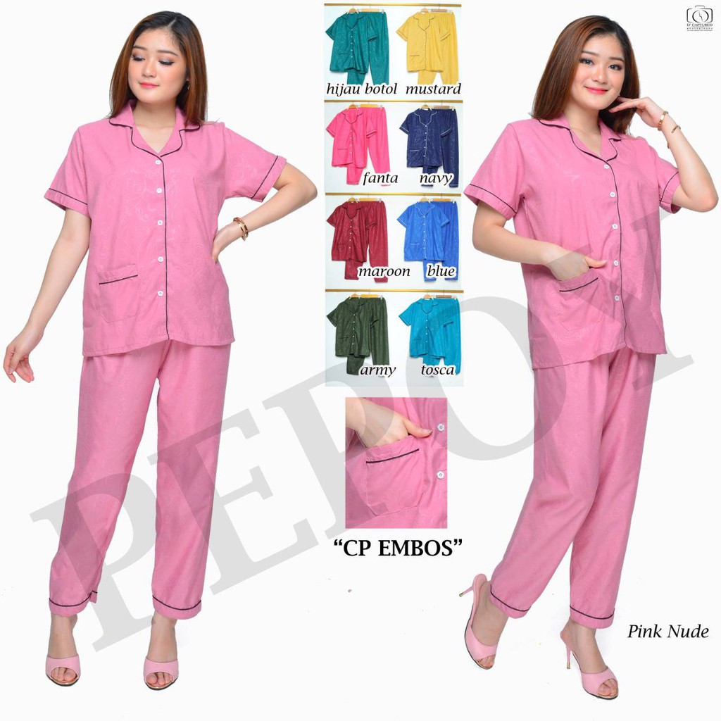 PEPOY SHOP SETELAN PIYAMA BAJU TIDUR CP CELANA PANJANG EMBOS LD 104 CM ALL SIZE