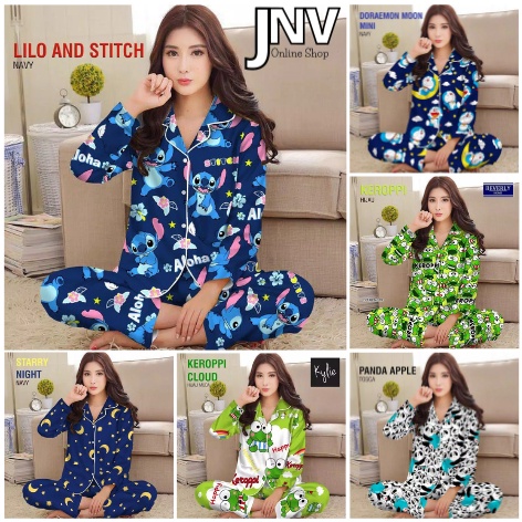 JNV PIYAMA PP WANITA MOTIF KARAKTER KARTUN 01 - BAJU TIDUR LENGAN PANJANG - BAHAN KATUN