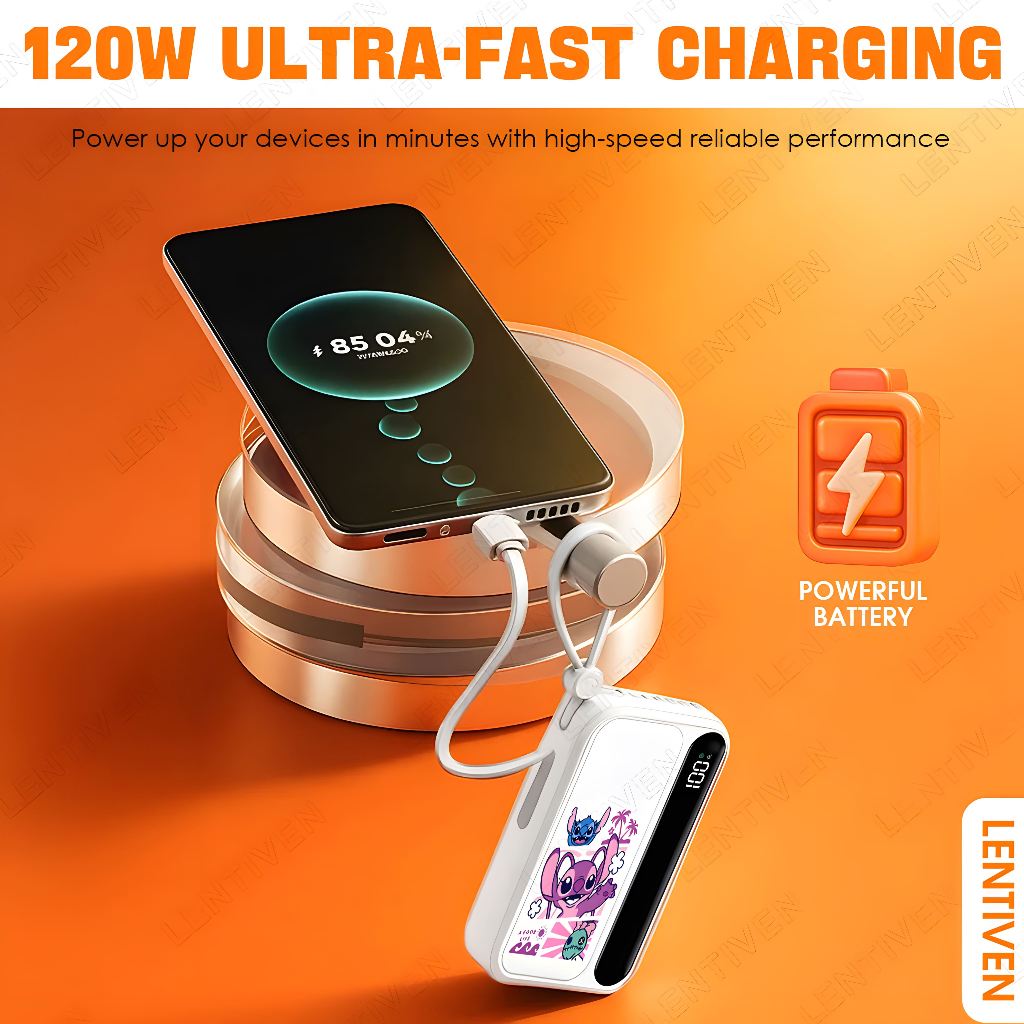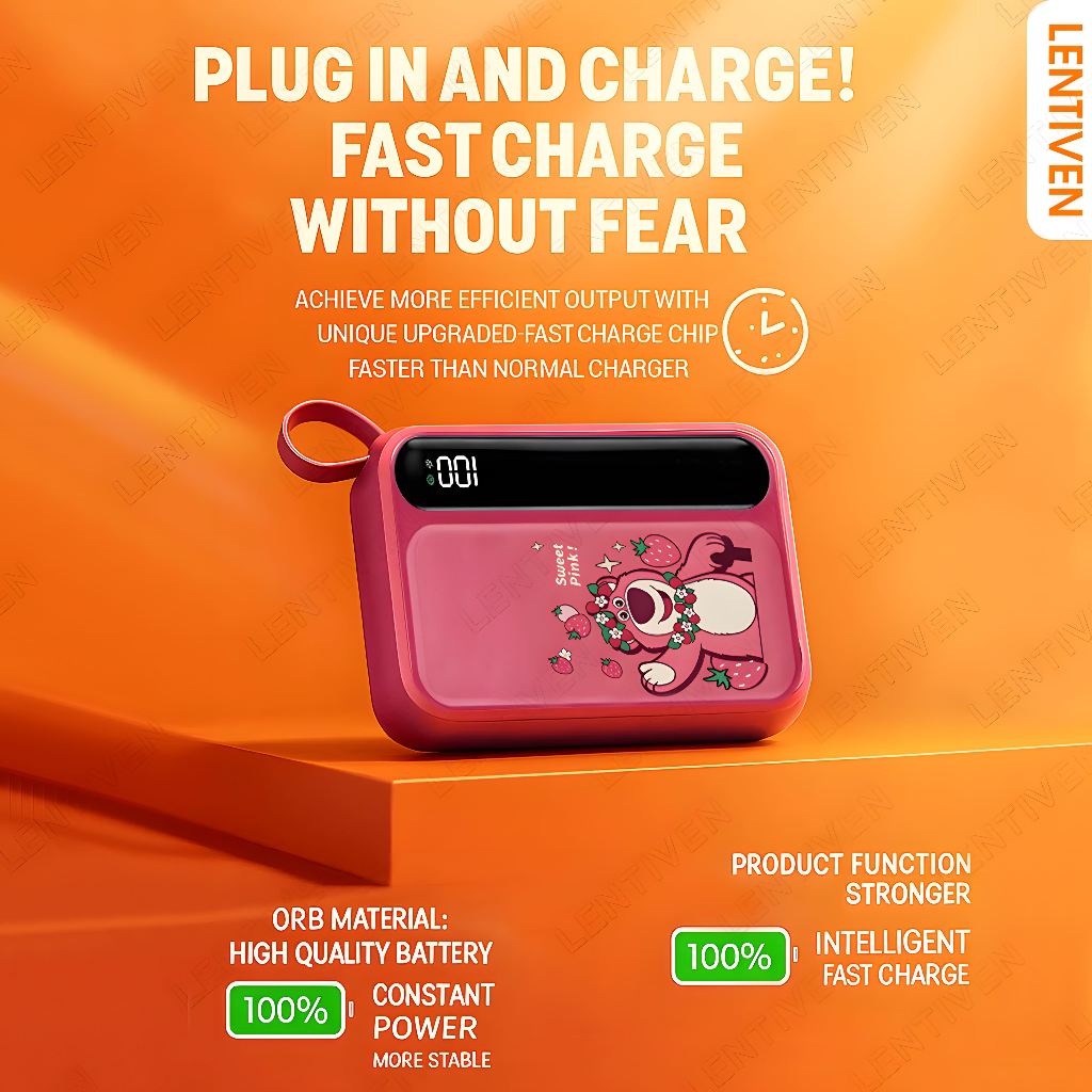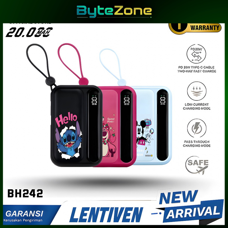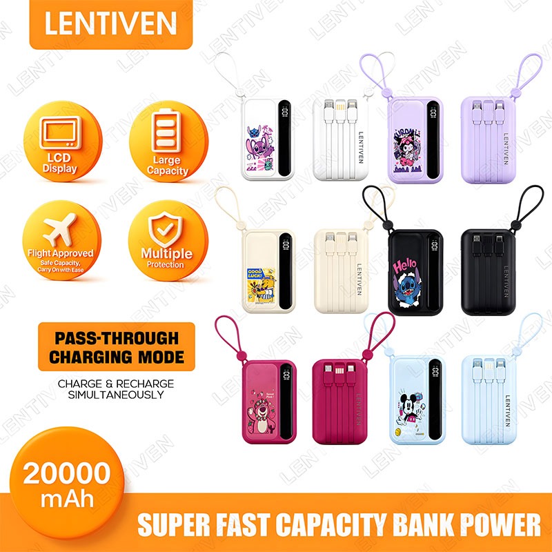 [Mall] SALYS LENTIVEN Powerbank 20000mAh Mini, Fast Charging, 4 Kabel + LED Display untuk iPhone/Android BH242✨