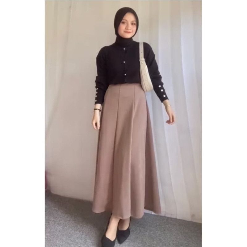 Rok Wanita Maxi Skirt Loose Korean Style Rok Flare Basic Polos Anti Kusut