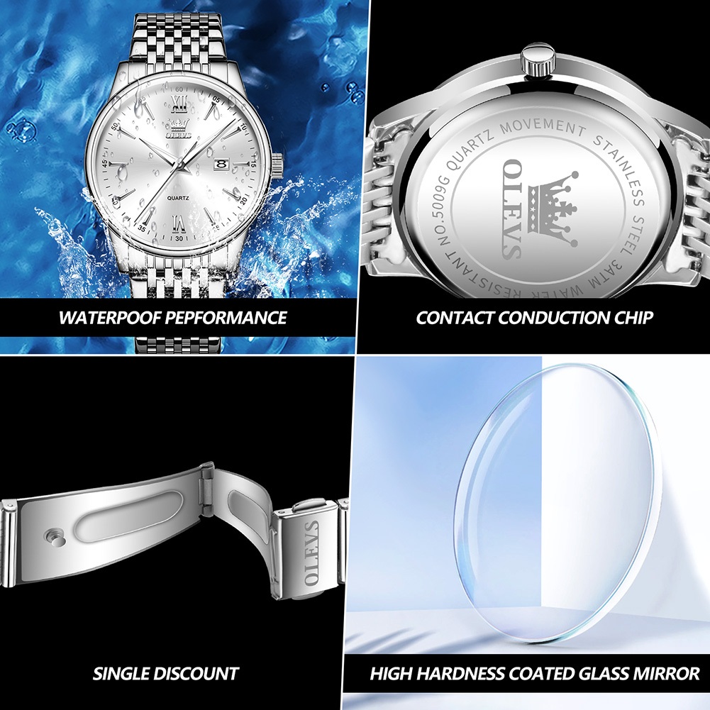 OLEVS Jam Tangan Pria Original Anti Air Cowok Kalender Arloji Jam Tangan Pria Rantai Stainless Steel Luminous Analog Bisnis Fashion Men Watches Ready Stock Mode 5009