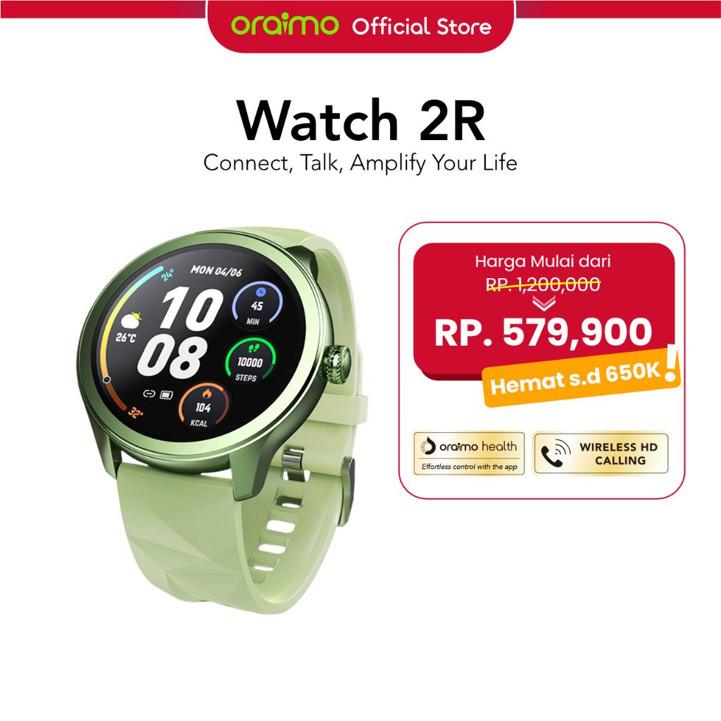 oraimo Smart Watch 2R OSW-30 Olive Green Colorful Jam Tangan Pintar 1.39" Screen 120+Sport Modes Bluetooth 5.2 Calling Heart Monitoring Long Battery IP68 Waterproof Dustproof Oraimo