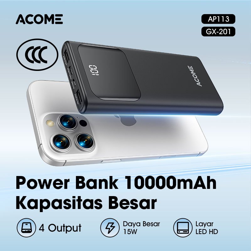 [Mall] ACOME AP113 Powerbank 10000mAh 15W Fast Charging | 4 Output LED Display iPhone Android✨