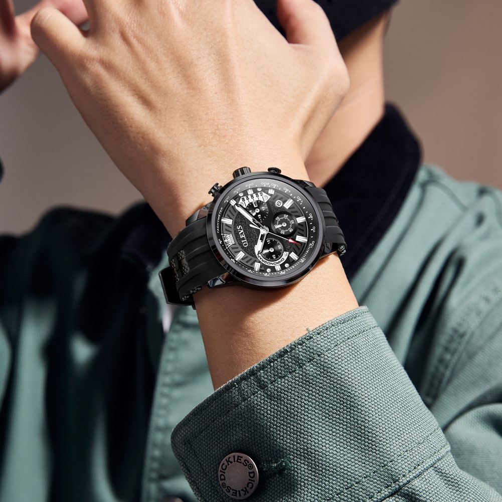 OLEVS Jam Tangan Pria Anti Air Original Model Terbaru Kemewahan Kalender Luminous Hitam Man Watch