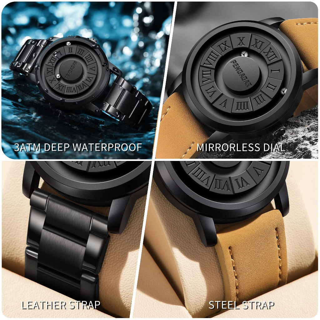 LIGE Jam Tangan Modis Jam Tangan Kuarsa Manik-manik Bergulir Magnetik Kreatif Kepribadian Pria Jam Tangan Olahraga Kasual Tahan Air Uniseks