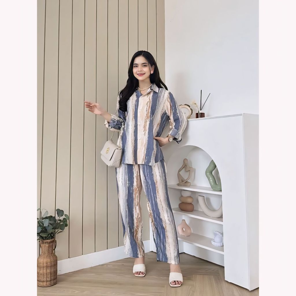 PIYAMA ONE SET WANITA KEKINIAN RAYON SETELAN WANITA PAKAIAN WANITA LENGAN PANJANG BAJU TIDUR