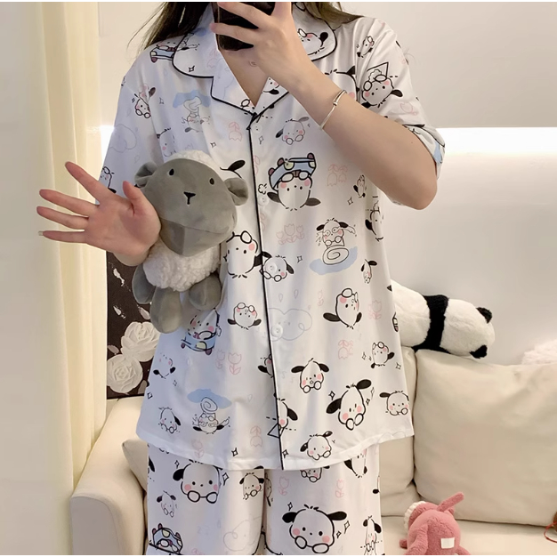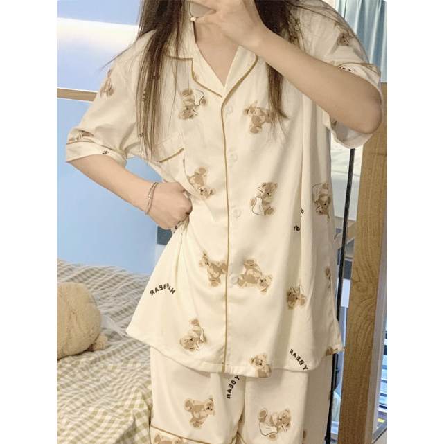 【TR】BT012 BAJU TIDUR SET WANITA DEWASA CELANA PENDEK PIYAMA KEMEJA IMPORT KOREA MOTIF PIAMA PAJAMAS