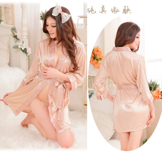 UNIXWEAR - KIMONO BAJU TIDUR SET LACE BAHAN SATIN ASCALOR SUTRA PIYAMA