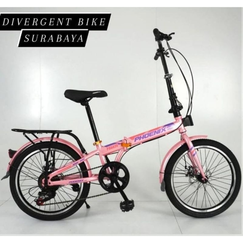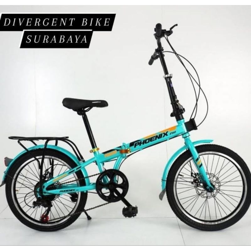 Sepeda Lipat Ukuran 20 Phoenix Star 7 Speed Bagasi Boncengan Cakram Murah