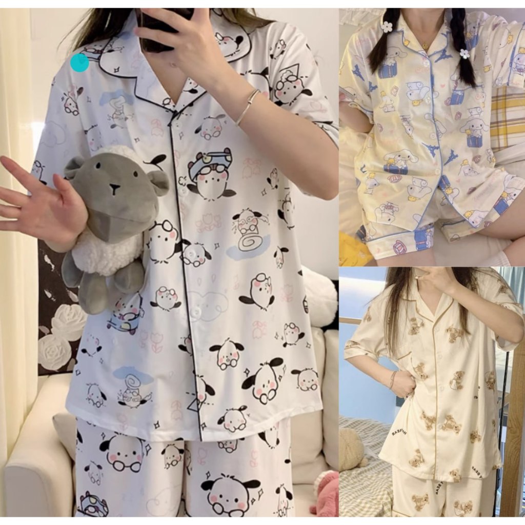 【TR】BT012 BAJU TIDUR SET WANITA DEWASA CELANA PENDEK PIYAMA KEMEJA IMPORT KOREA MOTIF PIAMA PAJAMAS