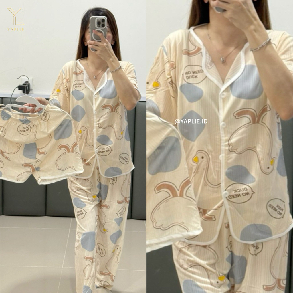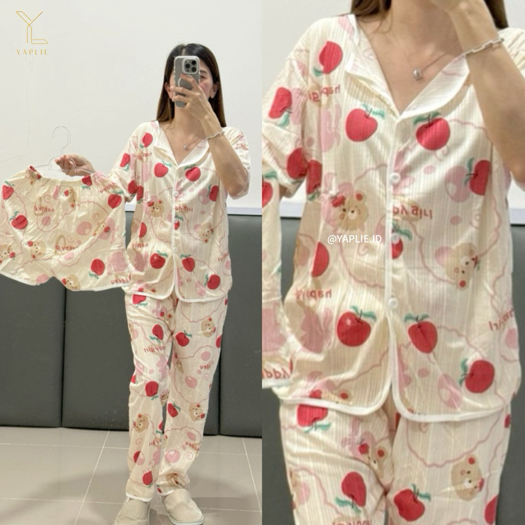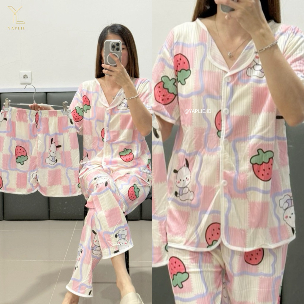 3KE01 YAPLIE BAJU TIDUR KOREA 3IN1 L BAHAN ADEM BAJU LENGAN PENDEK CELANA PANJANG FREE CELANA PENDEK