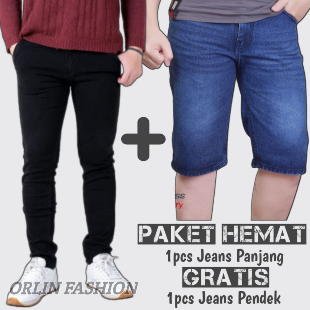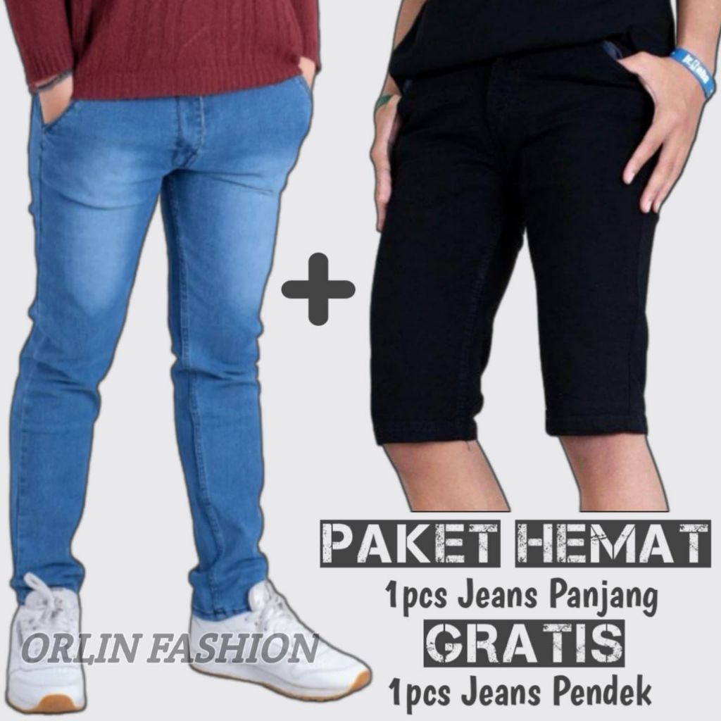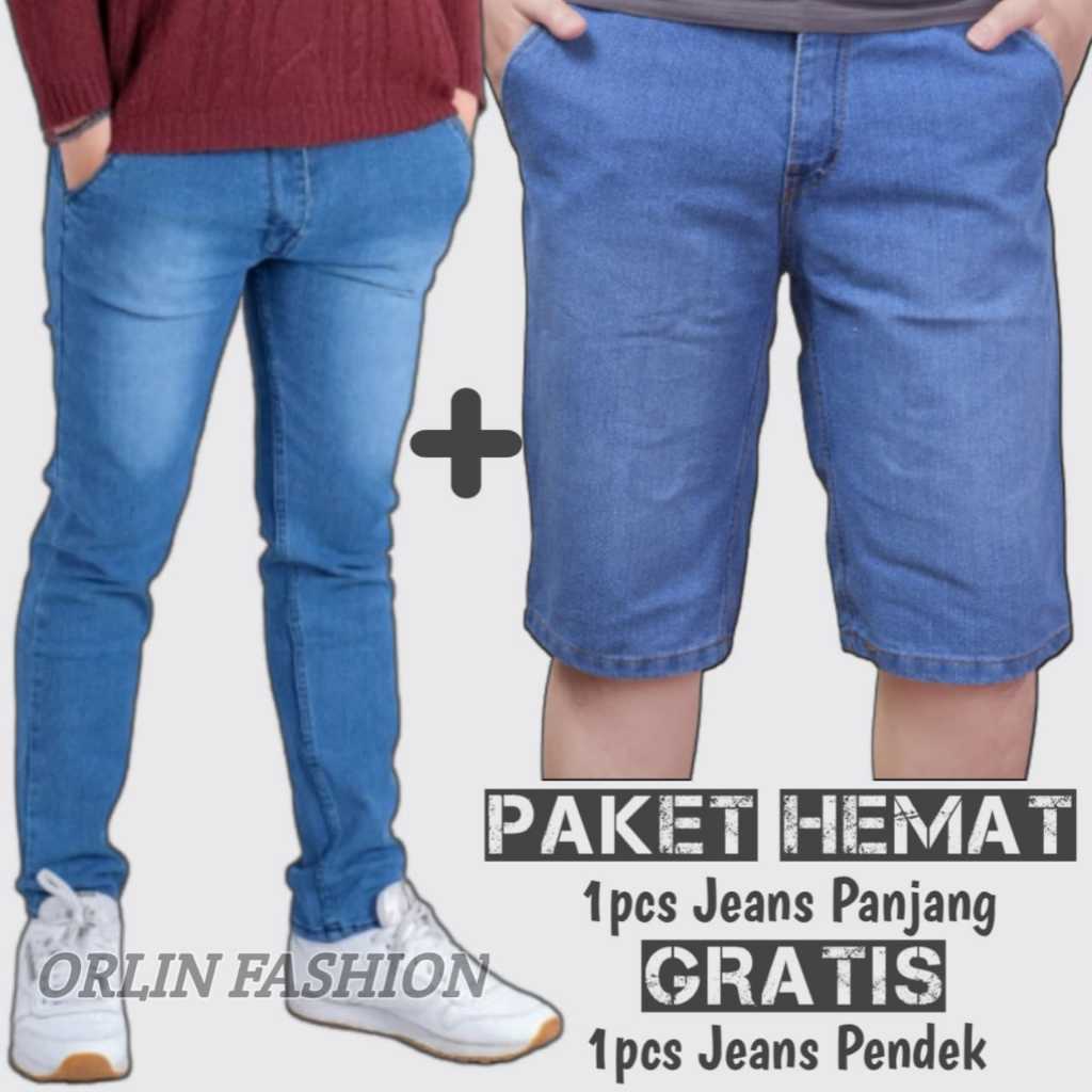 Buy One Get One Beli 1 Celana Jeans Panjang Slimfit Pria Gratis 1 Celana Jeans Pendek Pria Kekinian